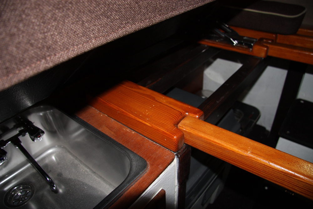 Кабина гальюна с дверкой, душем и биотуалетом. Задний диван трансформируется в двухспальную кровать кровать вдоль левого борта, откидной механизм двух передних сидений. Бак для воды на 70 литров и насос постоянного давления S75040 | подробнее |